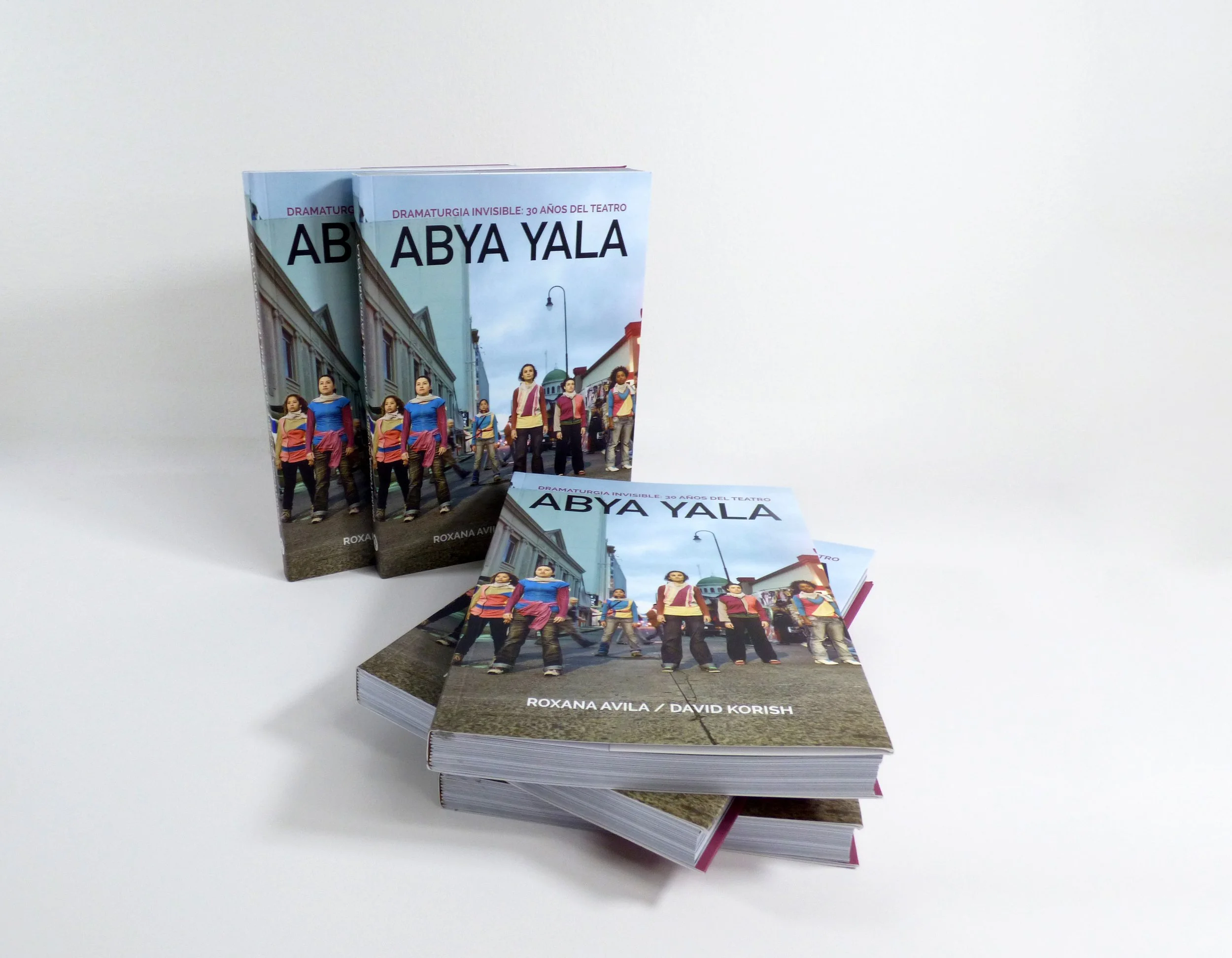 Este libro que resume el trabajo de un reconocido grupo teatral en Costa Rica, se hizo en pasta rústica mate, una alternativa que es más comercial que la pasta dura. Eso sí, el libro es cocido y tiene solapas, que son una extensión de la tapa (adelante y atrás), y se usan para marcar los libros. El material de las páginas es offset 90, que, en el mercado, se le conoce también como bond 24, de característica porosa.